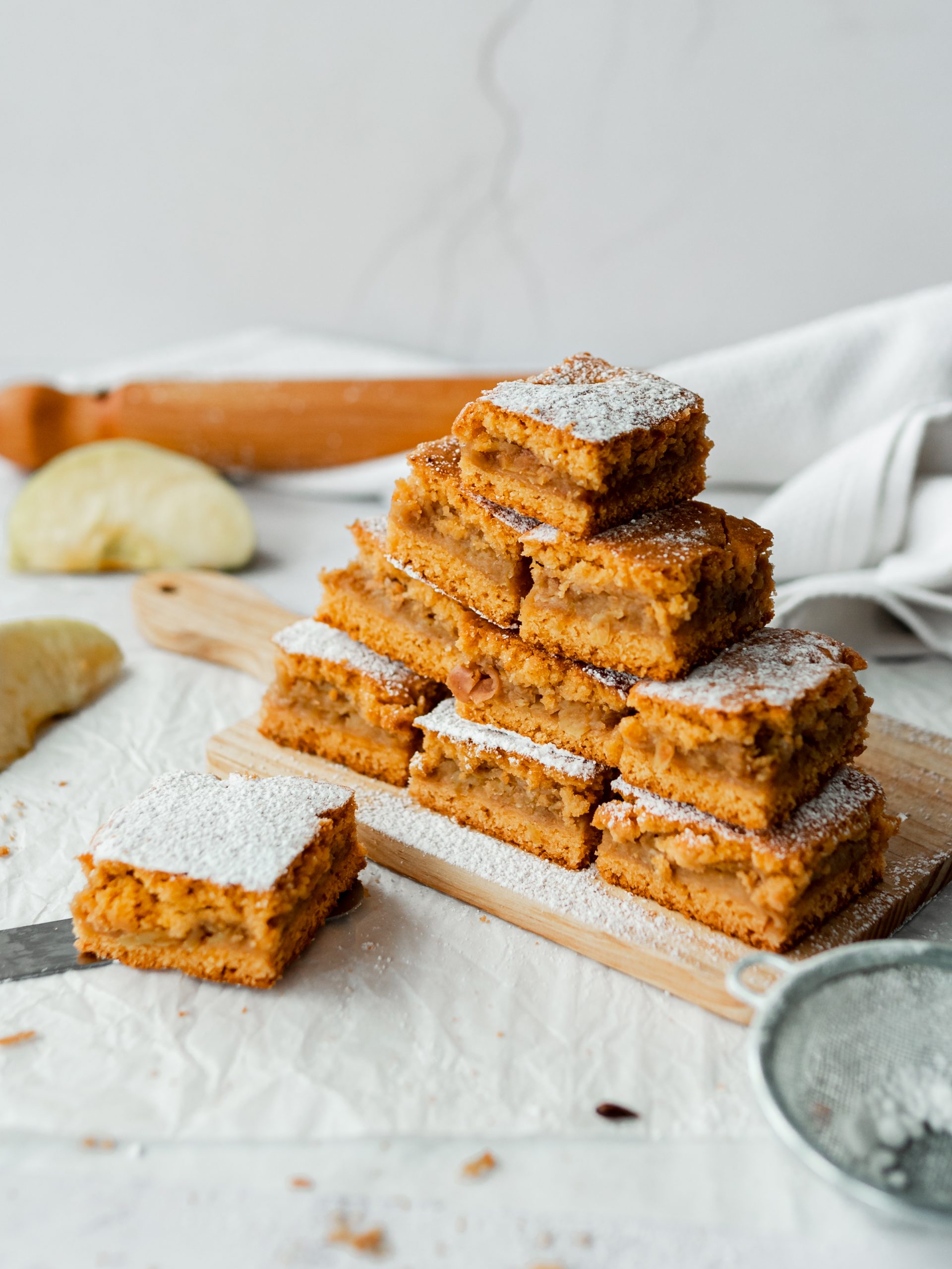 Ingrediente; ou, iaurt, făină, zahăr, ulei, unt, mere, scortisoara.